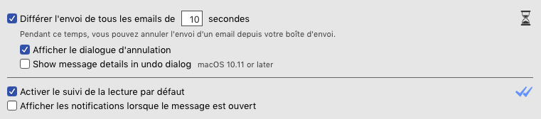 Autre fonction très utile : la possibilité d’activer (par défaut ou individuellement) un suivi de lecture. Même s’il ne fonctionne pas toujours (certains destinataires ont des paramètres qui leur permettent de bloquer le suivi), je dirais que cela fonctionne pour plus de 90 % des correspondants. Il est ainsi possible de savoir si le message a été ouvert, et quand. (La version Business de l’application permet un suivi encore beaucoup plus fin, mais elle est nettement plus coûteuse.)